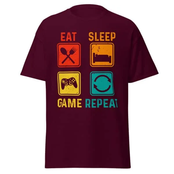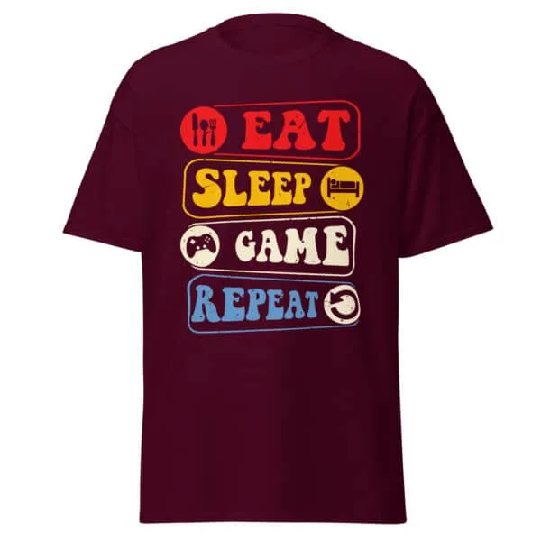 The “Eat Sleep Game Repeat” shirt symbolizes the fervent passion of gamers, capturing their daily dedication in a concise mantra. More than just a piece of clothing, it stands as a shared emblem for a global community, emphasizing the deep connection and shared experiences among enthusiasts. It’s a testament to a lifestyle where gaming isn’t just a hobby, but a core part of one’s rhythm of life.